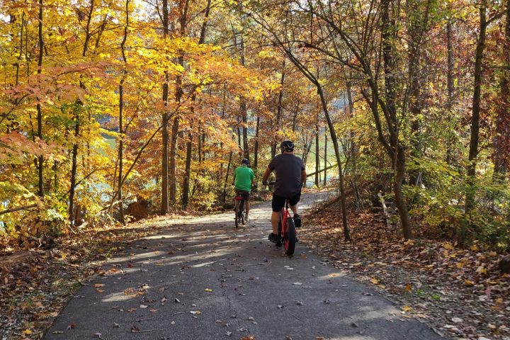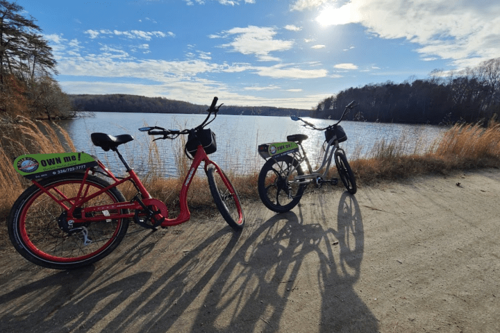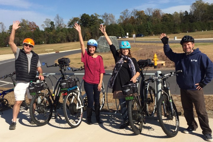 Immersing yourself in the beauty of nature that weaves its way throughout parts of the largest greenway in Winston Salem, this guided tour provides you with a full e-bike experience. This wooded, nature adventure pedals by Salem College, past WSSU, by a golf course, and to Quarry Park, which offers a peaceful refuge in the heart of Winston-Salem — and then back! Our e-bikes help you pedal up many hills and thrills on the bike trails of Winston-Salem, NC.
