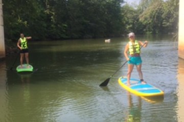 Join us soon for this 1.75 hour incredibly fun introductory-SUP lesson & paddle-tour upon nearby Belews Lake in Forsyth County (just adjacent to Guilford County line). This basic session provides methodical coaching for you to learn (or polish) a new skill(s), while also enjoying some Triad lake life. Even if you have “some” SUP experience, you will likely learn new SUP insights throughout this basic PaddleFit SUP class. If you listen to your instructor you won’t get wet (unless you want to). All modern equipment is included. Return to our website and view our Into-to-SUP video or call our local office (336/722-7777) if any questions might remain.